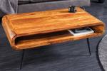 Tauche ein in die Welt natürlicher Eleganz mit dem Couchtisch ALPHA. Hergestellt aus Sheeshamholz mit einem natürlichen Stone Finish und einem stabilen schwarzen Metallgestell, strahlt dieser Tisch eine zeitlose Schönheit aus. Dieser rechteckige Couchtisch im Retro-Stil bietet nicht nur eine ansprechende Optik, sondern auch viel Stauraum für Deine Wohnaccessoires und Utensilien. Mit seinem großzügigen Fach und der geräumigen Tischplatte ist er ideal, um Ordnung zu schaffen und gleichzeitig einen Hauch von Nostalgie in Dein Zuhause zu bringen.