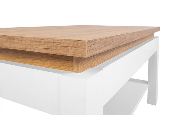 Hergestellt aus hochwertigem laminierten Holz und Holzfaserplatten bietet dieser Couchtisch eine solide Konstruktion, die für Langlebigkeit und Stabilität sorgt. Die rechteckige Form des Tisches verleiht ihm eine zeitlose Ästhetik und ermöglicht eine einfache Integration in verschiedene Einrichtungsstile.