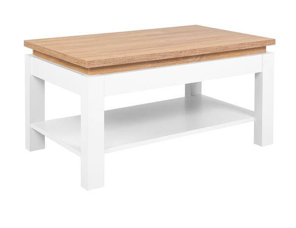 Der Couchtisch Horton verfügt über eine zusätzliche Ablagefläche, um Ihre Bücher, Zeitschriften oder andere Gegenstände ordentlich zu verstauen. Die Tischplatte ist fest und bietet keine Möglichkeit der Erweiterung.