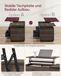 - Stabiler Halt: Hochwertige Metallscharniere und verstärkte Querstangen sorgen für ein sanftes und leises Heben und Senken der Tischplatte.