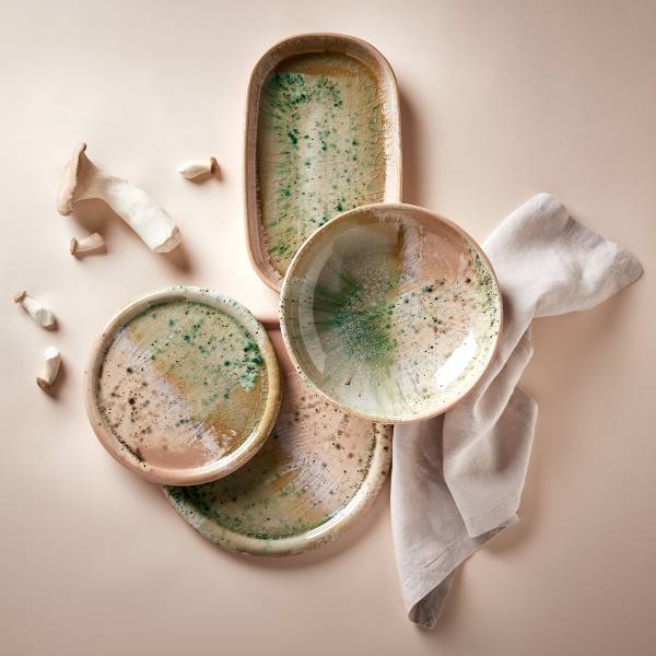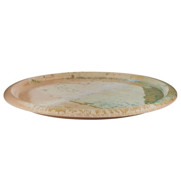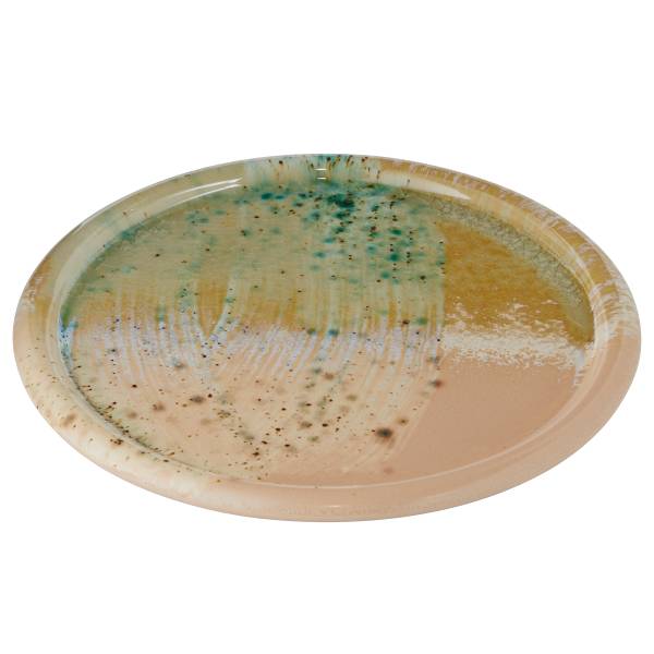 Ein einzigartiges Statement-Piece für deinen gedeckten Tisch: Der Sintra Dinnerteller 26 cm Durchmesser zieht mit seinen dynamischen Farbverläufen und abstrakten Mustern alle Blicke auf sich. Hinter dieser beeindruckenden Optik verbergen sich natürlich Glasuren mit individuellem Charakter, veredelt durch eine transparente Krakelé Glasur. Erdverbunden und authentisch entsteht so eine besondere Form von Luxus. Der Steinzeug-Teller ist übrigens spülmaschinengeeignet und mikrowellengeeignet, und für den perfekt gedeckten Tisch gibt es aus der Sintra Geschirrserie weitere Teller, Salatschalen und Servierschalen in verschiedenen Farbvarianten.