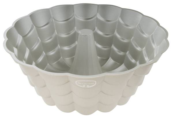 Mit der Gugelhupf-Form Floral aus der Serie Back-Kunst von Dr. Oetker zaubern Sie saftige Kuchen wie Rotweinkuchen oder Marmorkuchen in außergewöhnlicher Form. Die Formgebung der Backform ähnelt einer Blume mit vielen Blüten und ergänzt Ihre Backformensammlung kreativ – die Gestaltung in Cremefarben mit Metallicpigmenten macht die Form zu einem Highlight in Ihrer Küche. Einfach einfetten, Teig nach Wahl einfüllen und ab damit in den Ofen. Dank hervorragender Antihafteigenschaften löst sich das Gebäck mühelos aus der Kuchenform. Nach Gebrauch kann die Gugelhupfform leicht mit der Hand gereinigt werden.