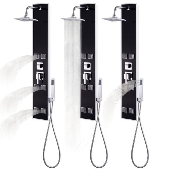 Der Duschturm ist aus Edelstahl und gehärtetem Glas gefertigt. Hartglas wird durch eine kontrollierte thermische oder chemische Behandlung hergestellt, die es im Vergleich zu normalem Glas haltbarer und sicherer macht. Es bietet 3 Duschmodi: Regendusche, Massagedusche und Handduschkopf, die einfach ausgewählt werden können. Die Silikon-Düsen sind resistent gegen Kalkablagerungen. Tauchen Sie in ein wirklich entspannendes Duscherlebnis ein und genießen Sie den modernen Stil dieses formschönen Duschpaneelsystems! Die Montage ist einfach.