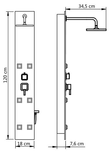 - Funktionen: Regendusche, 6 Körpermassagedüsen, Handdusche