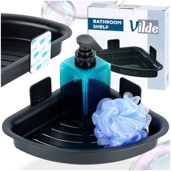Eck-Duschablage für Seife oder einzelne Kosmetika und Badezimmeraccessoires, montiert mit Klebeband. Hergestellt aus strapazierfähigen Materialien. Passt perfekt in jedes Badezimmerinterieur. Einfache Montage und praktisches Aufbewahren von Kosmetika machen sie zu einem sehr praktischen Element der Badezimmereinrichtung. Originalprodukt der Marke Vilde. Hergestellt nach europäischen Standards.