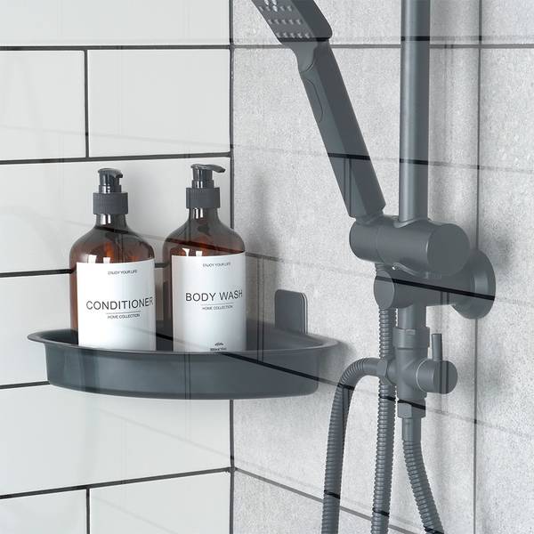 - Eck-Duschablage - Praktisches, eckiges Badezimmerregal. Das Regal wird an der Wand montiert und eignet sich ideal unter der Dusche, neben der Badewanne oder in der Nähe von Waschbecken und Spiegel. Dank ihr haben Kosmetika ihren Platz und sind während des Badens oder Duschens leicht zugänglich. Das Regal hat die Maße inklusive Saugnäpfen: 28 x 22 x 8 cm, die Höhe des Regals beträgt 4,5 cm.
