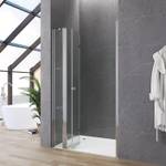 【Platzsparende Einzelfalttür】: Faltbare Glaselemente kann komplett an die Wand angeklappt werden, dies sorgt für eine maximale Einstiegsbreite. Die Drehfalttür kann nach innen oder außen geöffnet werden.