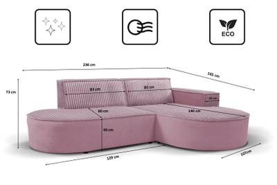 Entdecken Sie den perfekten Komfort des Ecksofas Modena Soft, die perfekte Lösung für Ihr Wohnzimmer, Arbeitszimmer oder den Sitzungssaal. Das Ecksofa Modena Soft, das auf einer gewellten Feder basiert, garantiert Stabilität und Komfort und bietet ein angenehmes Erlebnis beim Entspannen, beim Anschauen Ihres Lieblingsfilms oder beim Lesen eines Buches. Dank der hochwertigen Materialien und der soliden Konstruktion wird das Ecksofa Modena Soft seinen Benutzern viele Jahre lang Freude bereiten. Dieses elegante und ungewöhnliche Möbelstück passt perfekt in jede Inneneinrichtung Ihres Hauses. Das Ecksofa wurde in einer Kombination aus zwei hochwertigen Stoffen gefertigt, was seinen Charme noch verstärkt. Verbringen Sie angenehme Momente mit Ihrer Familie oder Ihren Freunden.
