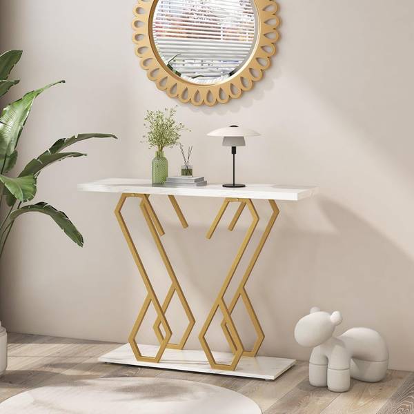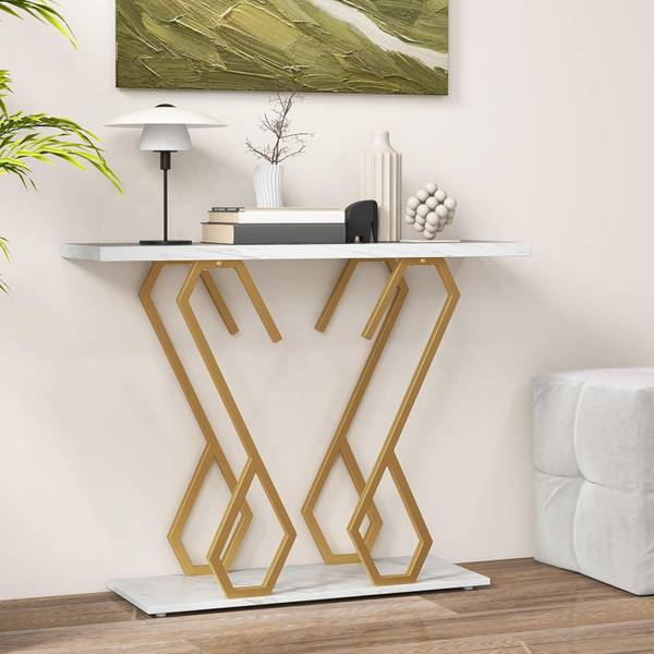 - 【Tischplatte aus Kunstmarmor】Um aufzufallen, verfügt der Konsolentisch über eine Tischplatte aus Kunstmarmor, die zarter aussieht und eine elegante Note hervorhebt. Mit ihrer Größe von 100 x 30 cm (L x B) bietet sie genug Fläche, sodass Sie Snacks platzieren, Zeitschriften auflisten oder Dekorationen aufstellen können.