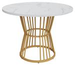 Dieser runde Esstisch verbindet edles Design mit funktionaler Alltagstauglichkeit. Die Tischplatte in eleganter Marmoroptik verleiht dem Raum ein stilvolles Ambiente, während das goldene Metallgestell in Gitterform einen modernen Akzent setzt. Ideal für stilbewusste Haushalte mit Anspruch auf Ästhetik und Qualität.