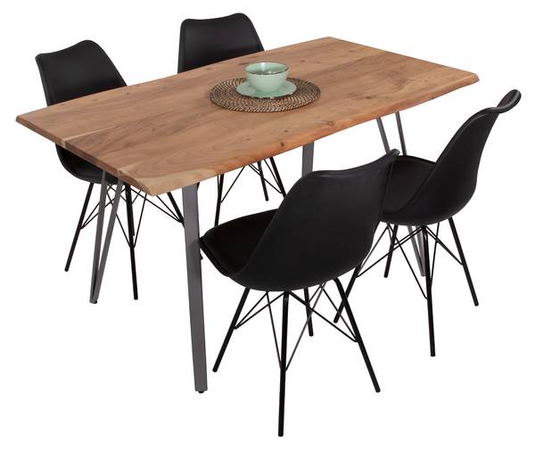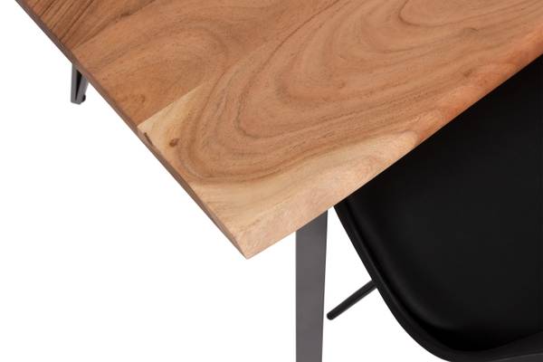 Natur Pur – Die massive Tischplatte aus hochwertigem Akazienholz ist langlebig und dezent lackiert. Zur Versiegelung verwenden wir nur umweltfreundlichen Lack, der die Oberfläche nicht zu 100 % versiegelt und so die charakteristische Haptik des Holzes erhält. Das sorgt für ein gutes Raumklima.