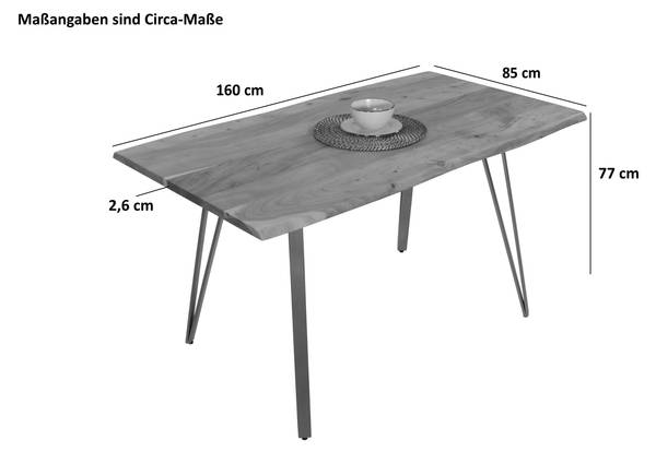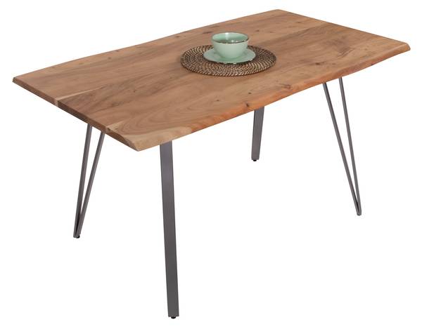 Stabiles Akazienholz – Die 26 mm starken sowie massiven Holzbohlen aus Akazienholz sind langlebig und robust. Akazienholz ist gelb bis goldbraun und ein hartes, widerstandsfähiges Holz. Die unterschiedlichen Maserungen, Farbnuancen und die echte Baumkante verleihen dem Tisch seinen einzigartigen Charakter.