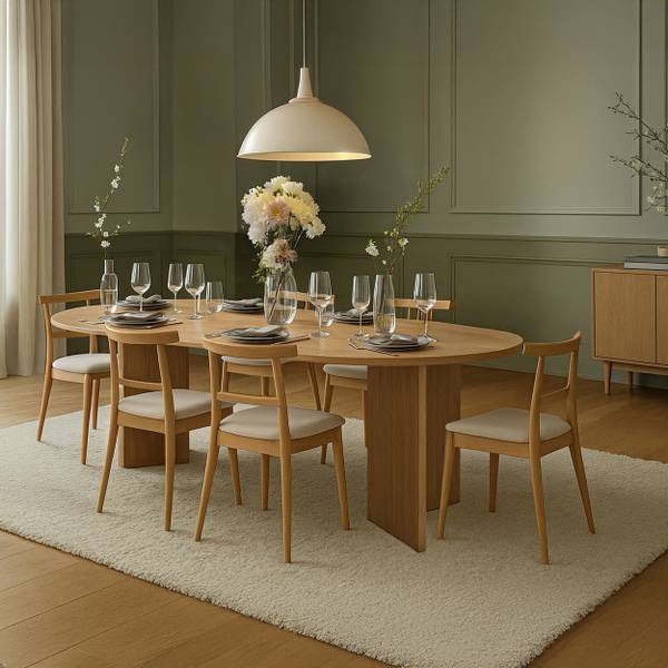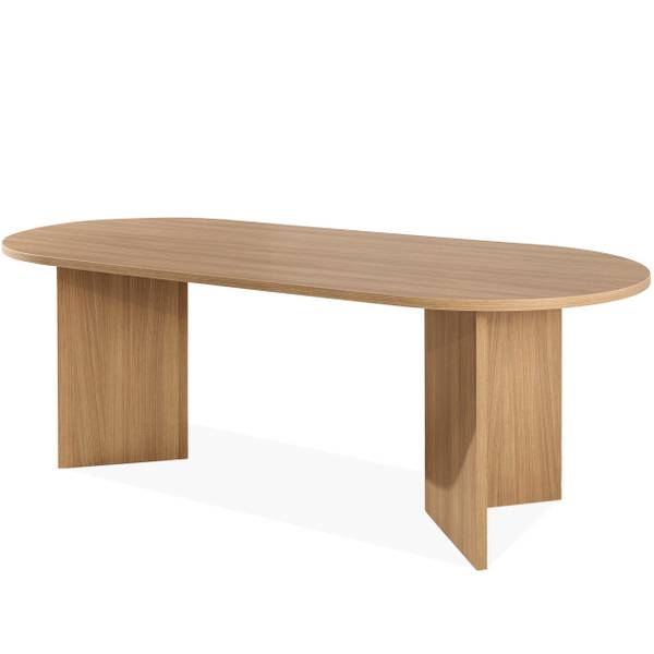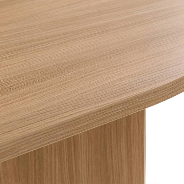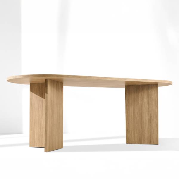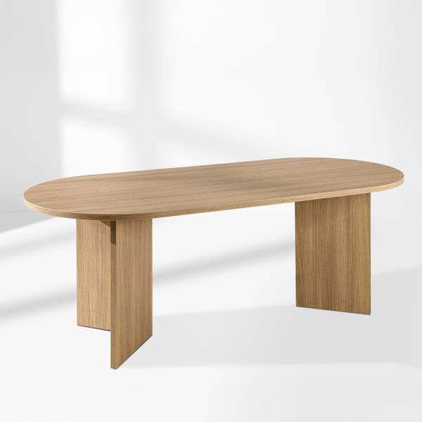 Die charakteristische ovale Tischplatte verleiht ihm nicht nur optische Leichtigkeit, sondern fördert auch Gespräche und die Integration und schafft so ideale Bedingungen für geselliges Beisammensein. Obwohl der Tisch nicht ausziehbar ist, bietet er mit seinen beeindruckenden Abmessungen – 204 cm Länge, 90 cm Breite und 75 cm Höhe – bequem Platz für bis zu 10 Personen. Er ist die ideale Lösung für tägliche Mahlzeiten und größere Feierlichkeiten.