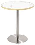 Entdecken Sie den runden Esstisch, ein unverzichtbares Element für Ihren Essbereich. Mit einem Durchmesser von 60 cm und einer Höhe von 72 cm eignet sich dieser Tisch ideal für kleine Räume oder um eine gemütliche Atmosphäre beim Essen zu schaffen. Seine Sperrholzplatte ist mit einem hochwertigen Laminat überzogen, das eine leicht zu reinigende Oberfläche bietet und gleichzeitig ein zeitgemäßes Design garantiert. Die Aluminiumkanten verleihen ihm eine elegante Note und verstärken die Stabilität des Ganzen. Dank einer Plattenstärke von 2,5 cm bietet dieser Tisch eine bemerkenswerte Stabilität, sei es für die täglichen Mahlzeiten oder für besondere Anlässe. Ob in Ihrer Küche, Ihrem Esszimmer oder sogar auf einer Terrasse, dieser runde Tisch lädt Sie dazu ein, unkompliziert unvergessliche Momente zu teilen.