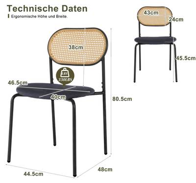 ERGONOMISCHE SITZFLÄCHE – Mit einer Sitzhöhe von 38 cm und einer Sitztiefe von 40 cm bieten diese Stühle optimalen Komfort für stundenlanges Sitzen. Die Sitzbreite von 46.5 cm sorgt dafür, dass du bequem Platz nehmen kannst, während die Rückenlehne für zusätzlichen Halt sorgt. Die runden Kanten des Sitzes und der Rückenlehne dienen einer sichereren und bequemeren Nutzung für Ihre Verwandten.