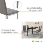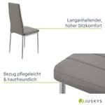 Das Gestell aus stabilem Stahl sorgt für eine hohe Belastbarkeit der Esszimmerstühle. Der Bezug aus PVC macht sie zusätzlich pflegeleicht und robust im Gebrauch.