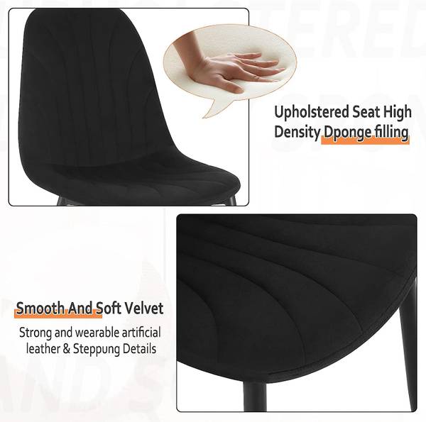 Weich und elegant: Unser Esszimmerstuhl ist mit elastischem Schaumstoff gepolstert und mit hochwertigem Samt bezogen, was einen weichen Griff, eine atmungsaktive und verschleißfeste Sitzflächeund ein elegantes Aussehen schafft.