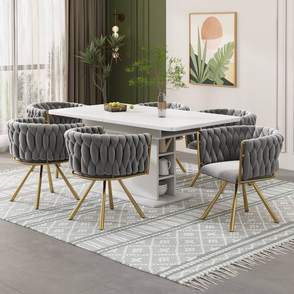 ●Luxuriöses haptisches Erlebnis: Bezogen in hochwertigen Samtstoff präsentiert es nicht nur eine elegante visuelle Textur, sondern bietet auch ein hautfreundliches und komfortables Sitzgefühl und verleiht dem Essbereich einen leichten Luxusstil
