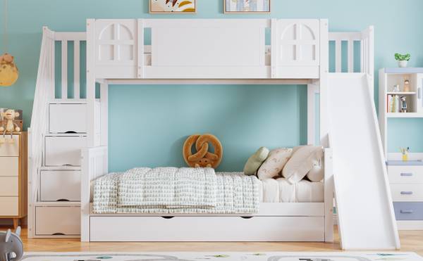 - Praktische Stauraumtreppe: Die Treppe dient nicht nur als Zugang zum oberen Bett, sondern enthält auch 4 geräumige Schränke für Spielzeug und Kleidung.