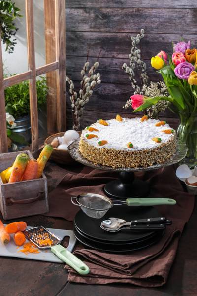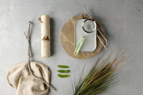 Die Küchenhelfer-Serie Ecolution steht für natürliche Materialien wie Holzfasern und Zuckerrohr, die in einem neuen Material kombiniert werden, welches nicht nur widerstandsfähig ist sondern sich auch gut anfühlt. Der Griff liegt besonders ergonomisch in der Hand, dank einer integrierten Daumenmulde ist ermüdungsfreies Arbeiten garantiert. Im Griff der Produkte steckt eine Kombination aus Holzfasern und Biokunststoff. So besteht dieser nahezu aus 100% nachwachsenden Rohstoffen.