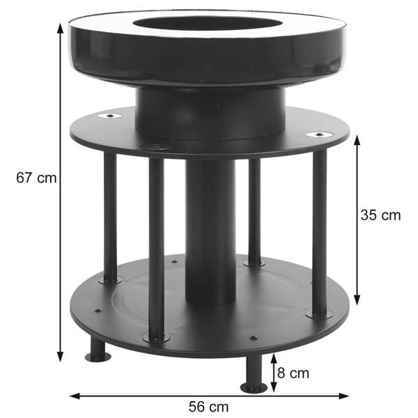 - Die exklusive Feuerschale können Sie klassisch mit Holzkohle oder Feuerholz betreiben. Die Grillutensilien kann man praktisch in den integrierten unteren Ablageflächen aufbewahren, so sind sie immer griffbereit.