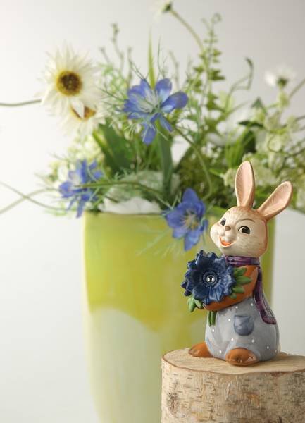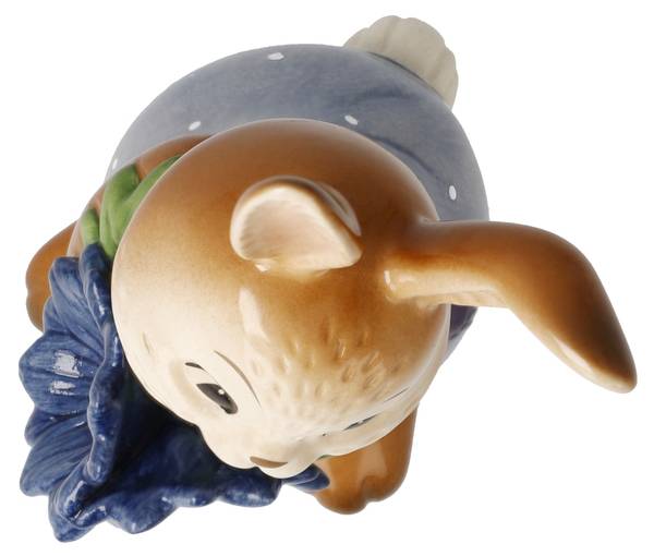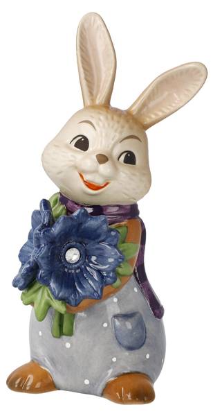 Freude bereiten. Mit den leuchtenden Kristallsteinen in den tiefblauen Blüten schafft er das sicher.Seit den 1950er Jahren steht der „Goebel-Hase“ für handbemalte Details