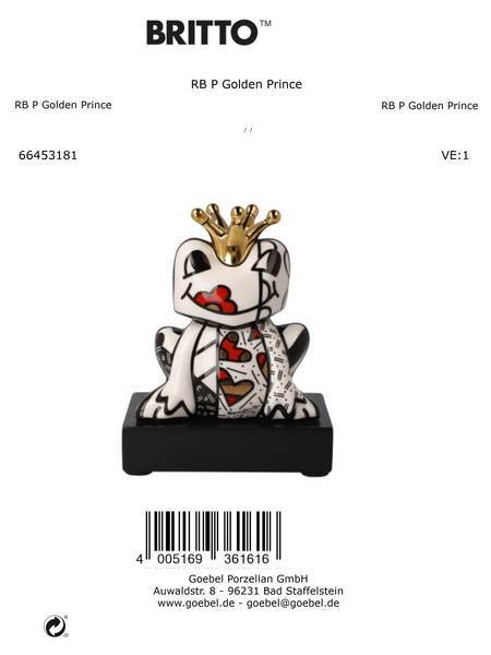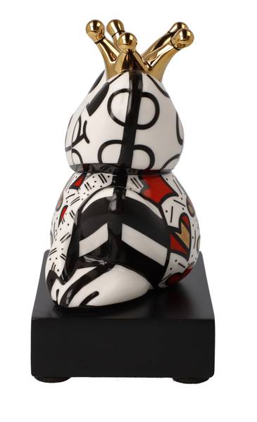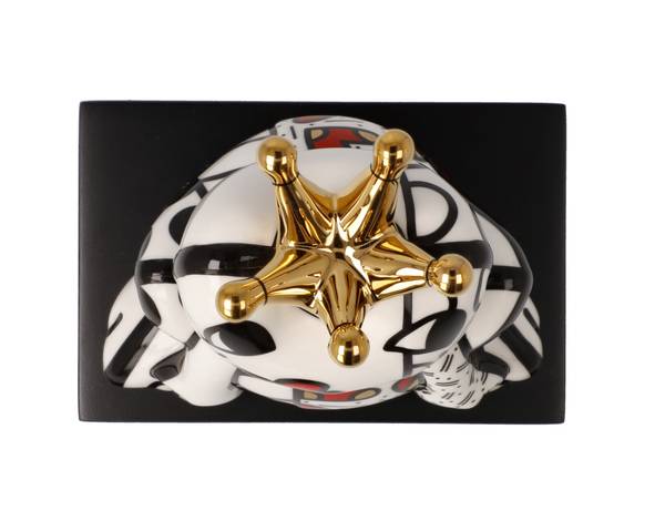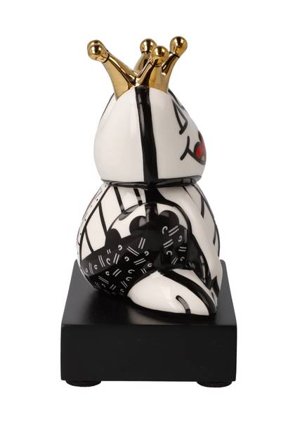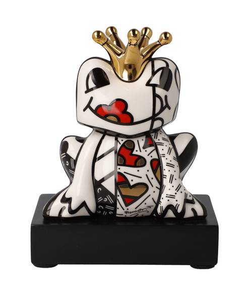 Hoffnung und Freude gewidmet. Die auf 999 Stück limitierte Figur „Golden Prince" auf schwarzem Holzpostament erscheint durch ihr dezentes Design mit echter Goldapplikation besonders edel und fügt sich perfekt in jedesmoderne Wohnambiente ein.Romero Britto benutzt leuchtende Farben und kräftige Muster als visuelle