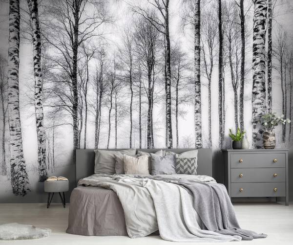 Fototapete 3D Effekt Wald Birken Tapete | inklusive Kleister