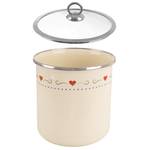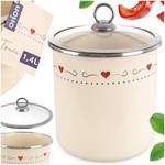 - Hergestellt aus emailliertem Stahl - Hergestellt aus hochwertigem emailliertem Stahl in Cremefarbe mit einem zarten Herzmotiv. Der Rand des Behälters ist aus rostfreiem Stahl in Silberfarbe gefertigt. Im Set enthalten ist ein Glasdeckel mit einem Rand aus rostfreiem Stahl. Die Emaille, mit der das Gefäß überzogen ist, ist ein gesundheitsfreundliches Material und sogar sicher für Allergiker.