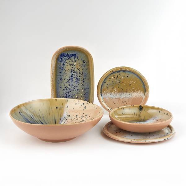 Ein einzigartiges Statement-Piece für deinen gedeckten Tisch: Der Sintra Frühstücksteller 21,5 cm Durchmesser zieht mit seinen dynamischen Farbverläufen und abstrakten Mustern alle Blicke auf sich. Hinter dieser beeindruckenden Optik verbergen sich natürlich Glasuren mit individuellem Charakter, veredelt durch eine transparente Krakelé Glasur. Erdverbunden und authentisch entsteht so eine besondere Form von Luxus. Der Steinzeug-Teller ist übrigens spülmaschinengeeignet und mikrowellengeeignet, und für den perfekt gedeckten Tisch gibt es aus der Sintra Geschirrserie weitere Teller, Salatschalen und Servierschalen in verschiedenen Farbvarianten.