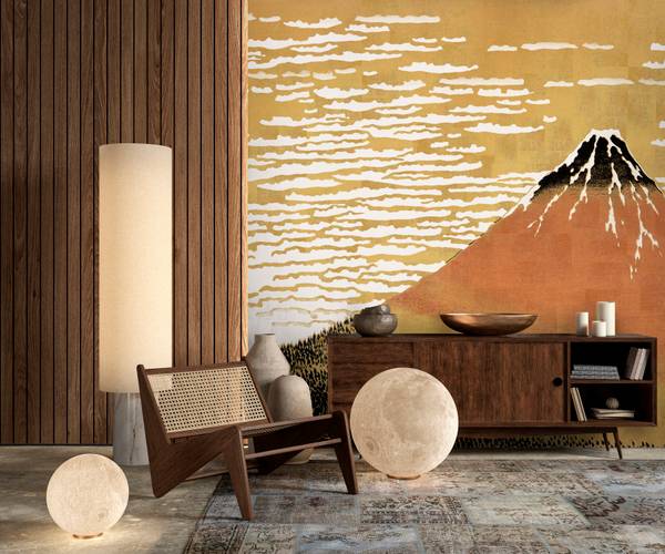 Hier ist eine Tapete, die Wände, die zu brav sind, sofort aufwertet. Ihre sehr warmen Farbtöne und das klare Grafikdesign versprechen Flucht und Originalität. „Fujisan“, ein heiliger Ort und Quelle künstlerischer Inspiration, verleiht Ihrem Innenraum eine japanische Atmosphäre. Lassen Sie sich von diesem kreativen Glanz verführen!