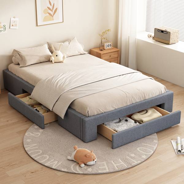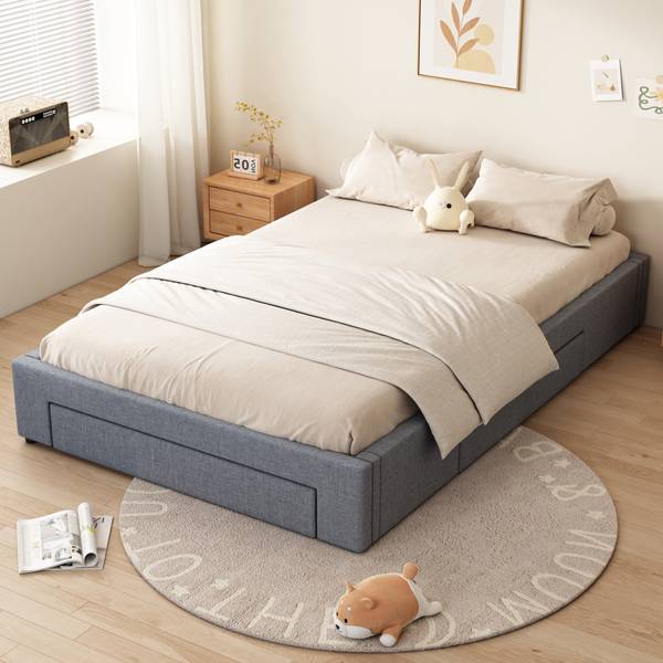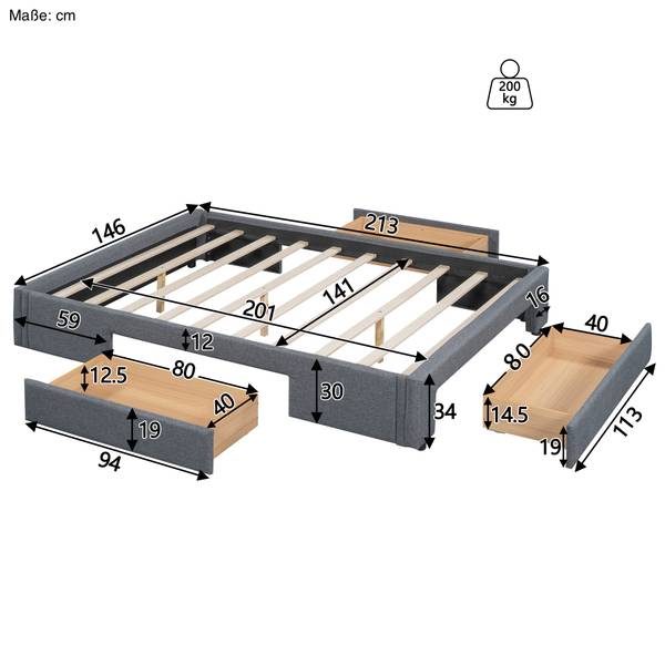 - Lieferumfang: 1x Futonbett, 1x Lattenrost und 3x Schubladen, ohne Matratze und Dekoration