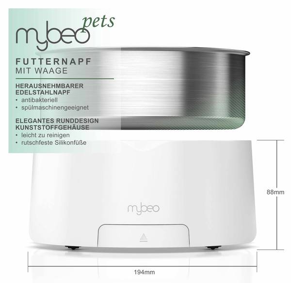 - Herausnehmbarer Edelstahlnapf, antibakteriell und für die Spülmaschine geeignet