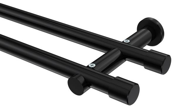 - Lieferumfang: 4 x Endstücke "Kappe" Schwarz, 2 x Rohre 140 cm Schwarz, 2 x Träger 2-läufig Schwarz inkl. Befestigungsmaterial