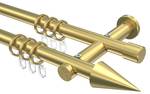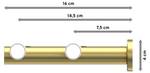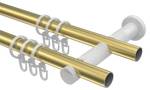 - Lieferumfang: 2 x Endstücke "Kappe" Messing-Optik, 2 x Endstücke "Kegel" Messing-Optik, 48 x Flachringe Messing-Optik mit Faltenlegehaken, 4 x Rohre 120 cm Messing-Optik, 2 x Rohrverbinder, 3 x Träger 2-läufig Messing-Optik inkl. Befestigungsmaterial
