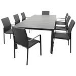 Die acht stapelbaren Gartensessel überzeugen mit hohem Sitzkomfort. Die weich gepolsterte, schnelltrocknende Sitzfläche und das wetterfeste, durchgehende Gewebe sorgen für ein angenehmes Sitzgefühl – perfekt für lange Sommerabende. Das leichte, aber stabile Aluminiumgestell in Anthrazit fügt sich harmonisch in das edle Gesamtbild ein.