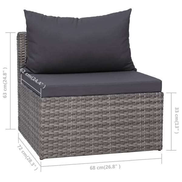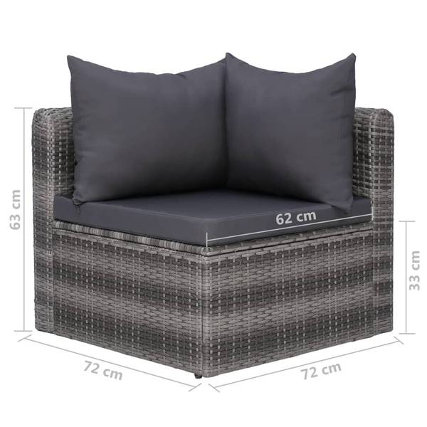 Diese Poly Rattan Sofa-Set, bestehend aus 3 Sofa-Eckelementen, 4 Sofa-Mittelstücken, 1 Couchtisch, 7 Sitzpolstern und 10 Rückenkissen, bietet einen großzügigen Sitzbereich und bleiben auch modern mit einem Hauch von Klasse für Ihren Garten oder Ihre Terrasse.