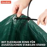 Mit einem Durchmesser von 67 cm und einer Höhe von 76 cm bietet der Abfallsack ausreichend Platz für große Mengen an Gartenabfällen. Ein besonderes Highlight ist die selbststehende Konstruktion, die durch einen integrierten Spannring unterstützt wird. Dadurch bleibt die weite Öffnung während des Befüllens offen und erleichtert die Arbeit erheblich. Jeder Sack ist wasserabweisend, UV-beständig und recycelbar, was ihn perfekt für den Einsatz im Freien macht.