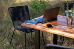 - Tischkante: Echte Baumkante – jedes Stück ein Unikat