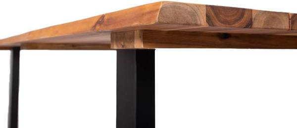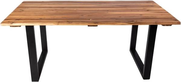 Mit dem Baumkantentisch Avila holen Sie sich die ursprüngliche Schönheit massiven Holzes auf Ihre Terrasse, in den Garten oder den Wintergarten. Gefertigt aus geöltem Akazienholz, begeistert Avila durch seine ausdrucksstarke Maserung, eine charmant viergeteilte Tischplatte und eine echte Baumkante, die die organische Form des Baumes bewahrt. Das schwarze U-Gestell aus robustem Metall verleiht dem natürlichen Design eine moderne, klare Linie – für ein stilvolles Ambiente unter freiem Himmel.