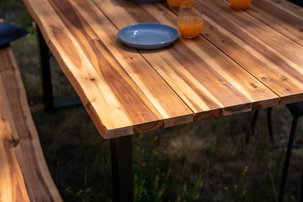 Massives Akazienholz – Für höchste Ansprüche:Das hochwertige, massiv geölte Akazienholz macht den Tisch robust, widerstandsfähig und pflegeleicht. Die schützende Ölbehandlung unterstützt seine Wetterbeständigkeit, wobei bei länger anhaltender Feuchtigkeit oder Frost ein Schutz empfohlen wird, um die natürliche Schönheit zu bewahren.