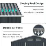 Der Geräteschuppen ist mit einem geneigten Dach ausgestattet, das Regenwasser schnell abfließen lässt und Wasseransammlungen vermeidet. Darüber hinaus sind die ausgewählten verzinkten Stahlplatten und farbbeschichteten Metallbleche rostfrei und rissbeständig, was eine Haltbarkeit bei allen Wetterbedingungen gewährleistet.