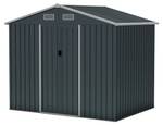 Sind Sie es leid, das Chaos in Ihrem Hinterhof, Bauernhof oder Garten zu haben? Schauen Sie nicht weiter als zu diesem Gerätehaus. Mit den Abmessungen von 235 cm x 171 cm x 196 cm (L x B x H) bietet es reichlich Platz, um all Ihre Poolgeräte, Werkzeuge, Fahrräder, Rasenmäher und mehr zu lagern. Das geneigte Dach und die verzinkte Stahlplatte sorgen für Haltbarkeit bei allen Wetterbedingungen und verhindern Rost und Risse. Die Schwerlast-Konstruktion mit einer Metallbodenbasis, Dreiecksankern und Stoßfängern sorgt für zusätzliche Stabilität. Ausgestattet mit 2 Schiebetüren mit Griffen für einfachen Zugang und 4 Lüftungsöffnungen, um Ihre Gegenstände trocken zu halten, kann dieser vielseitige Lagerraum als Geräteraum, Nutzraum, Müllhaus oder sogar als Tierunterkunft genutzt werden.