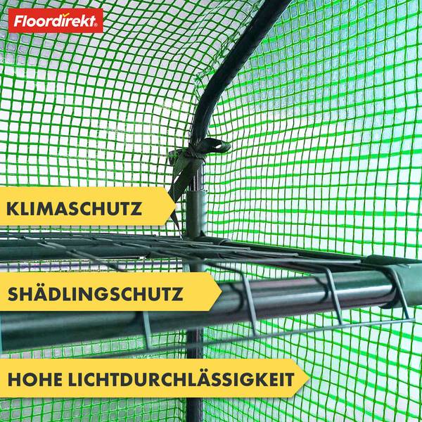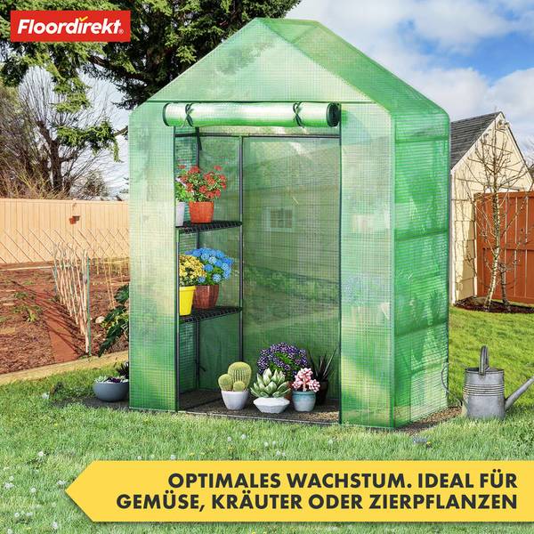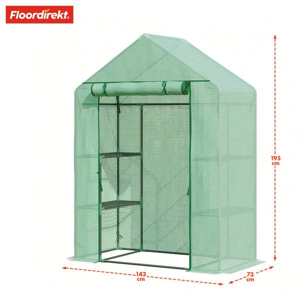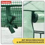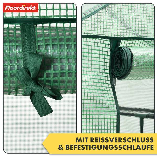 Für eine optimale Belüftung und einen leichten Zugang ist das Gewächshaus mit einer aufrollbaren Tür ausgestattet, die bequem mit einer Schlaufe fixiert werden kann. Der integrierte Reißverschluss erlaubt ein einfaches Verschließen, sodass Ihre Pflanzen vor äußeren Einflüssen wie Kälte, Wind oder Schädlingen geschützt bleiben.