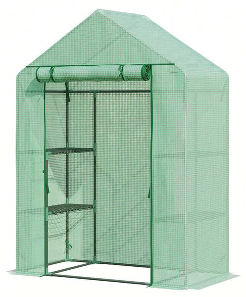 Der Aufbau des Gewächshauses gestaltet sich besonders einfach dank eines praktischen Stecksystems, das ohne zusätzliches Werkzeug auskommt. Die Stahlstangen mit einem Durchmesser von 1,6 cm verleihen dem Gewächshaus eine hohe Stabilität und Standfestigkeit. Ergänzt wird dies durch stabile Metallablagegitter, die eine platzsparende und sichere Platzierung Ihrer Pflanzen ermöglichen.
