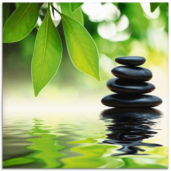Motiv: Zen Steinpyramide auf Wasseroberfläche