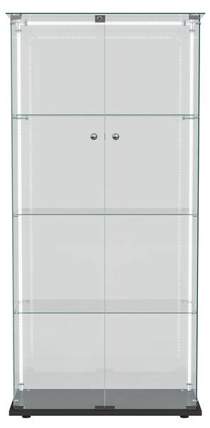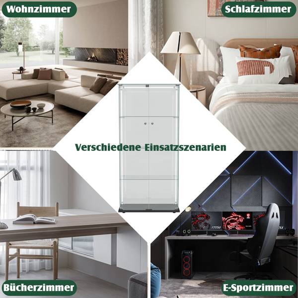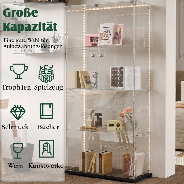Stabil und langlebig: Der Schrank besteht aus hochdurchlässigem, gehärtetem Glas und Massivholzplatten, die eine hohe Klarheit, Kratzfestigkeit und starke Tragfähigkeit bieten. Dadurch wird das Risiko von Glasschäden minimiert, und der Schrank eignet sich für eine langfristige Nutzung. Jede Glasplatte trägt bis zu 22 Pfund.