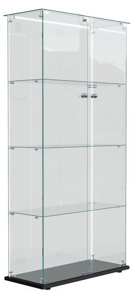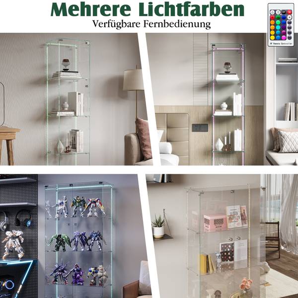 LED-Beleuchtung: Das Produkt ist mit integrierten, energieeffizienten Klatschlampen/LED-Streifen ausgestattet, die gleichmäßige und helle Beleuchtung bieten, sodass Ihre Ausstellungsstücke bei allen Lichtverhältnissen glänzen. Dieser Glasvitrinenständer ist in den Farben Schwarz und Weiß erhältlich.