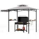 Der Outdoor-Grillpavillon ist mit 2 seitlichen Metallregalen und Haken zum Aufhängen ausgestattet und bietet einfachen Zugang zu Besteck, Geschirr und Grillzubehör. Und es gibt einen eingebauten Flaschenöffner für zusätzlichen Komfort.