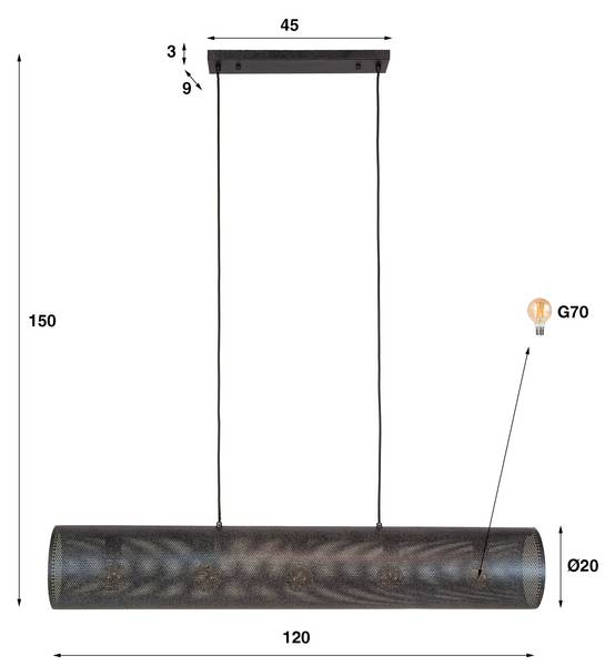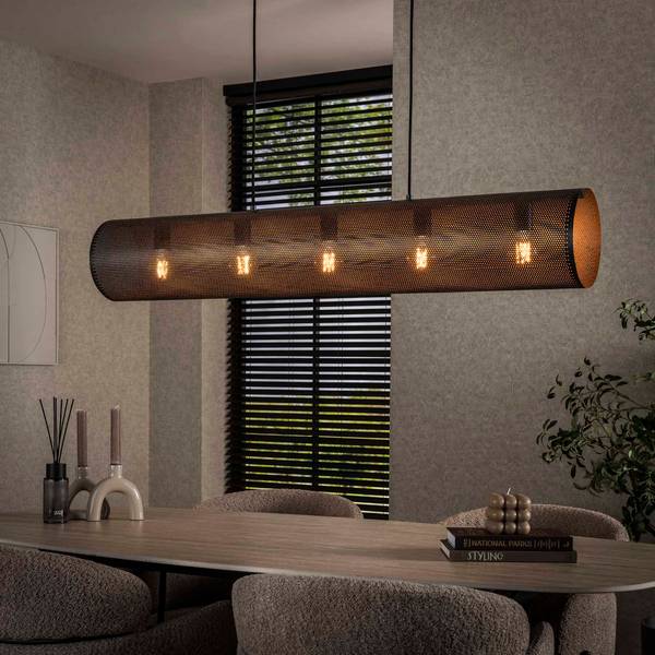 Diese Hängelampe „Tube Mesh“ besteht aus Metall mit einem arktischen schwarzen Finish. Das Netz sorgt für eine schöne Lichtverteilung. Die Lampe ist bis zu 150 cm höhenverstellbar. Von dieser Lampe gibt es eine größere Version und eine passende Steh- und Tischlampe. Eine stilvolle und zeitlose Lampe! Es wird empfohlen, eine LED-Lichtquelle (8465) zu verwenden.
